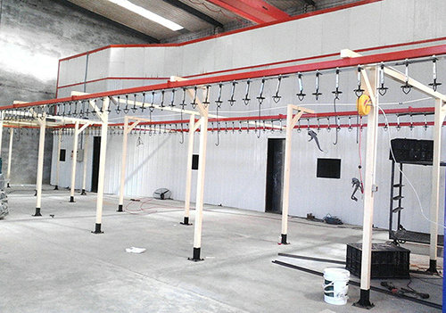 噴漆流水線設備適用于工件表面的噴漆、噴塑處理,多用于單件或小批量工件的涂裝作業(yè),配合懸掛輸送機、電軌小車、地面輸送機等運送機械形成運輸作業(yè)。